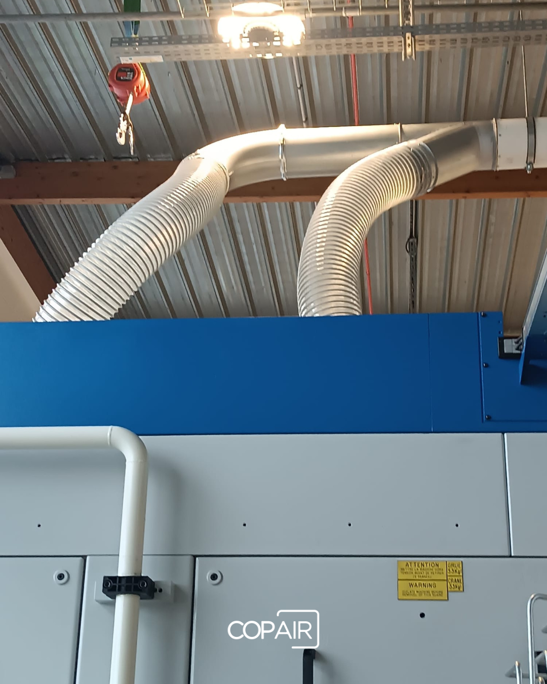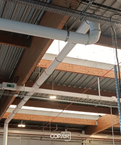 L’espace prévu pour la machine à l’origine ne permettait pas une installation directe : le réseau de gaines existant gênait la mise en place et devait être déplacé sans interrompre durablement l’activité. C’est précisément ce type de défi que nos équipes savent relever.