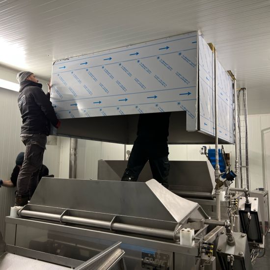 Installation d'une hotte inox alimentaire sur mesure et d'une extraction.