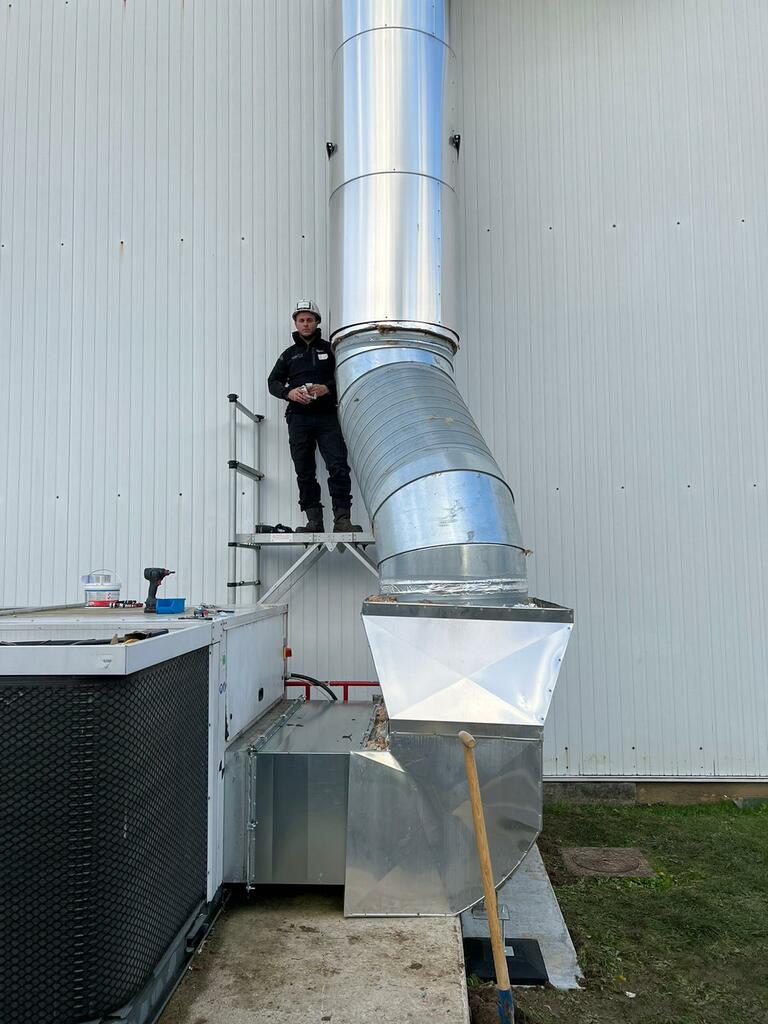 Installation de gaines de ventilation et rooftop dans les Flandres.