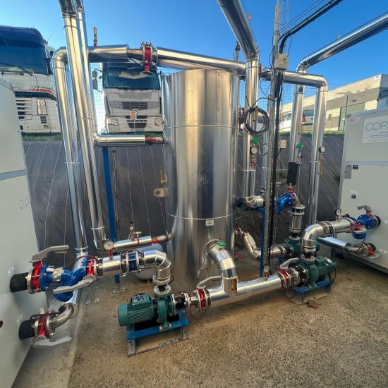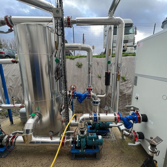 Dans le cadre de ce projet d’efficacité énergétique, nos équipes ont orchestré le remplacement intégral du groupe de production de froid d’un process industriel. 🏭