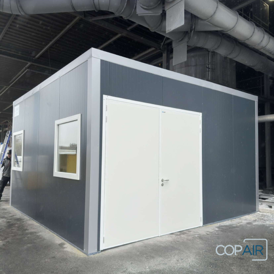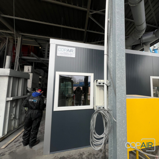 Composé de panneaux absorbant les nuisance sonores émises par la motorisation des machines, cet aménagement assure un environnement de travail plus calme et confortable pour le personnel du site📉.