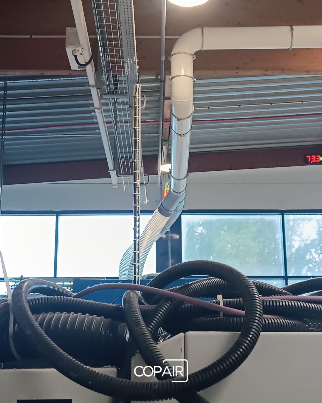 L’espace prévu pour la machine à l’origine ne permettait pas une installation directe : le réseau de gaines existant gênait la mise en place et devait être déplacé sans interrompre durablement l’activité. C’est précisément ce type de défi que nos équipes savent relever.